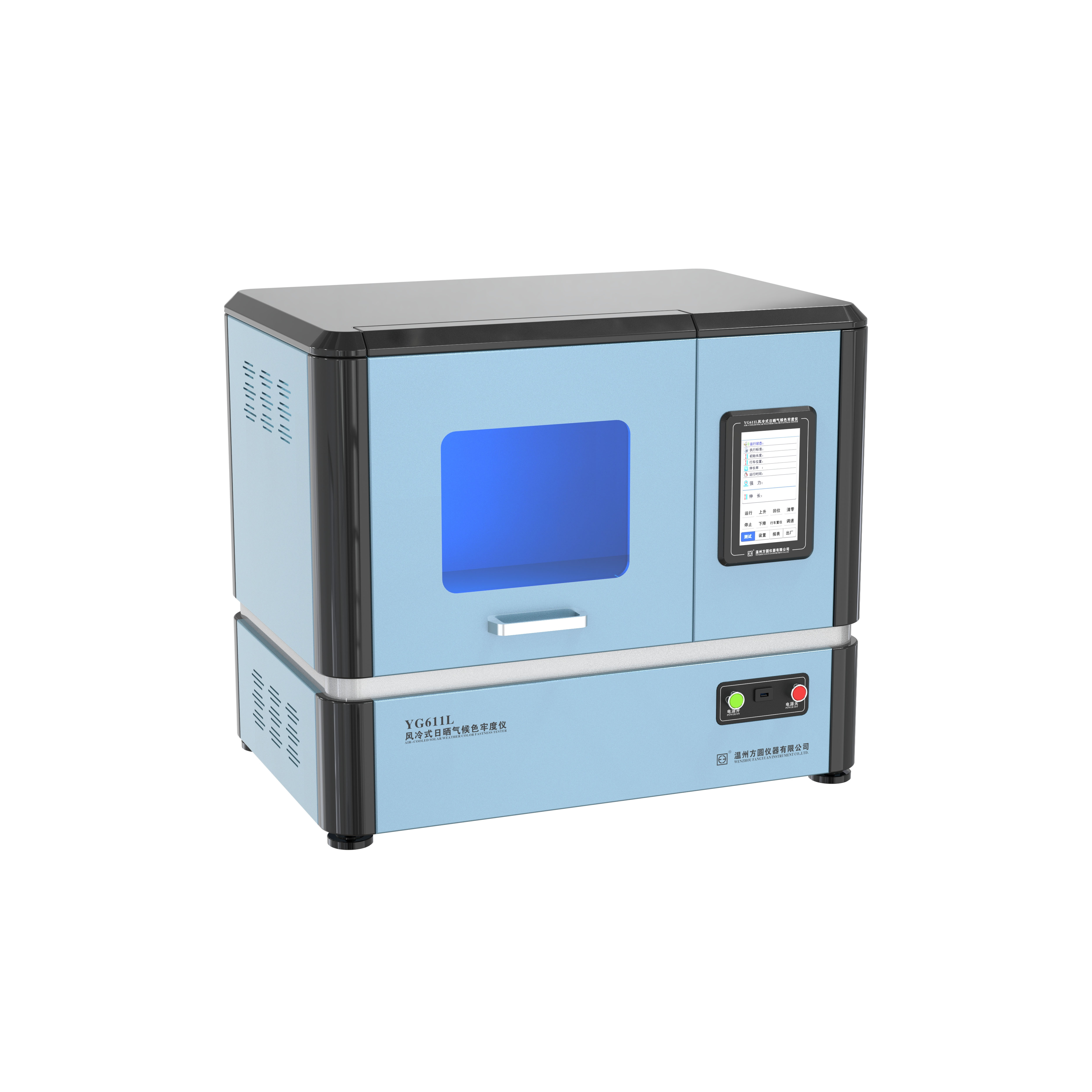 YG611L風(fēng)冷式氣候色牢度儀 GB/T1865-2009;GB/T1189-91;ISO11341;SAEJ1885;SAEJ2412; SAEJ2527;ISO4892-2;ASTM D2565;GB/T16422.2-1999;GB/T8427;AATCC16E;AATCC169(1);ISO 105B-06;ISO 105B-02;ASTM G155;ASTM D6551